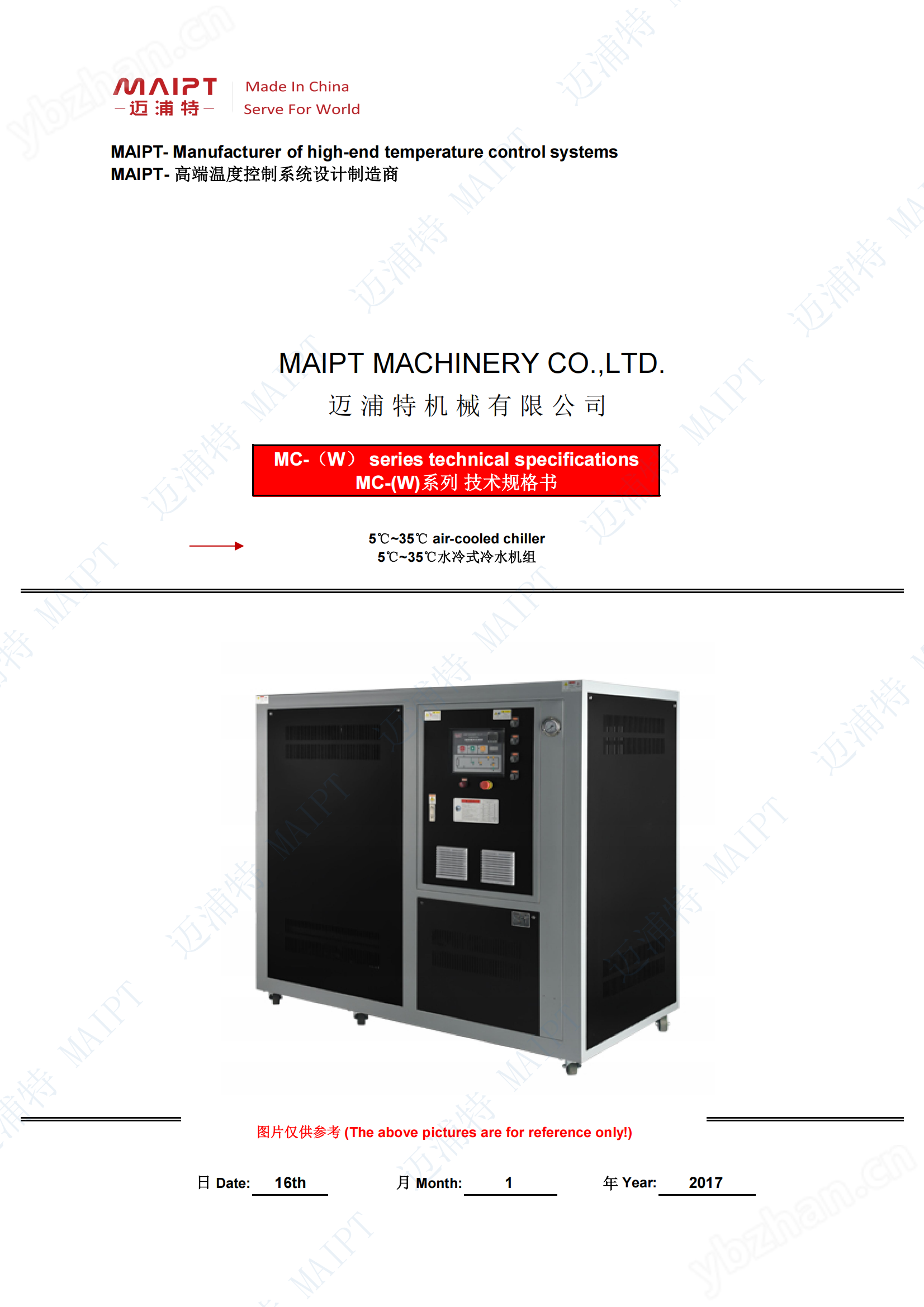 陶瓷生產控溫用風冷式螺桿冷水機組(MC-(W) 系列技術規格書示例